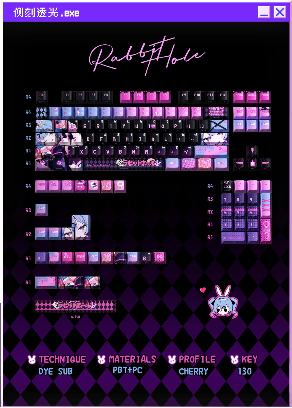 🎀 Keycaps Anime “Rabbit Babe” – Perfil Cherry | 130 Teclas