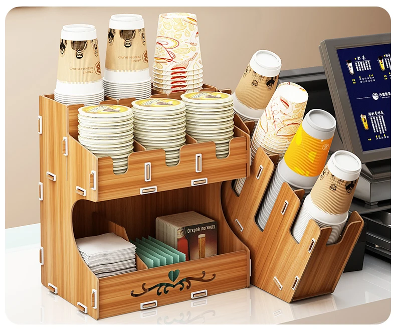 ✔ Múltiples compartimentos para vasos, tapas, bombillas, sobres de azúcar, café, té y accesorios