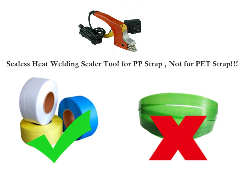 Note: Our heat sealers are ONLY suitable for PP strap (polypropylene strap), PET strap (polyester strap) can NOT be used.