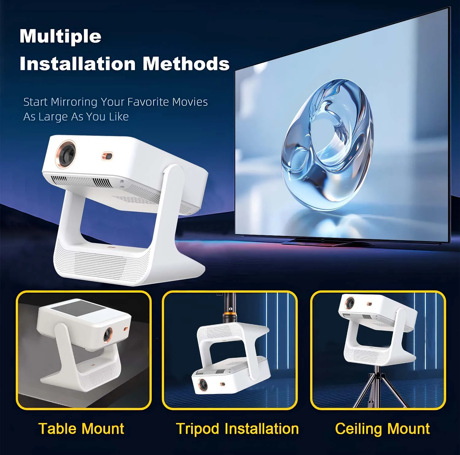• 🎬 Proyector Smart 1080P Nativo con WiFi 6 y Android 12 – 4K Soportado | Autofocus + Keystone Automático