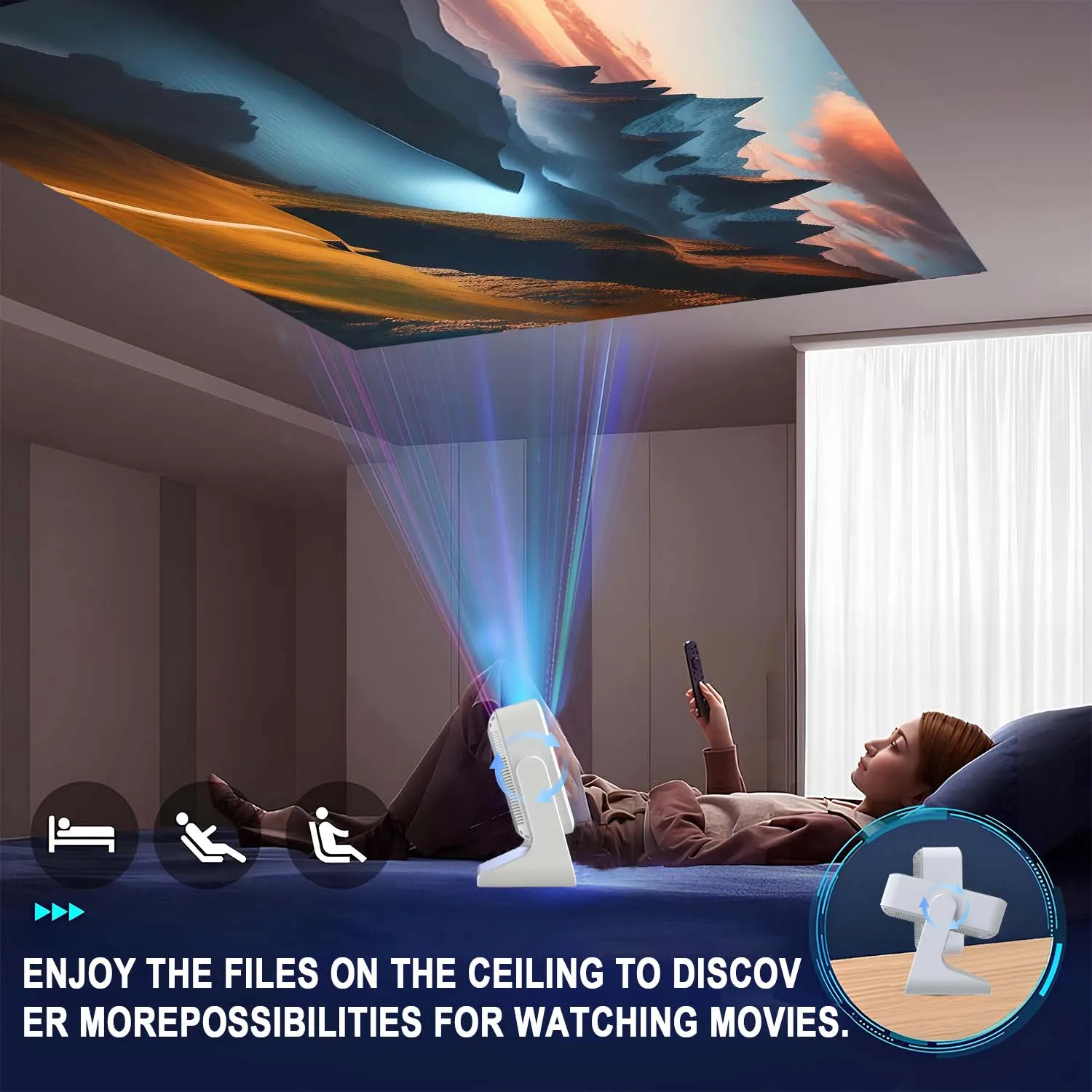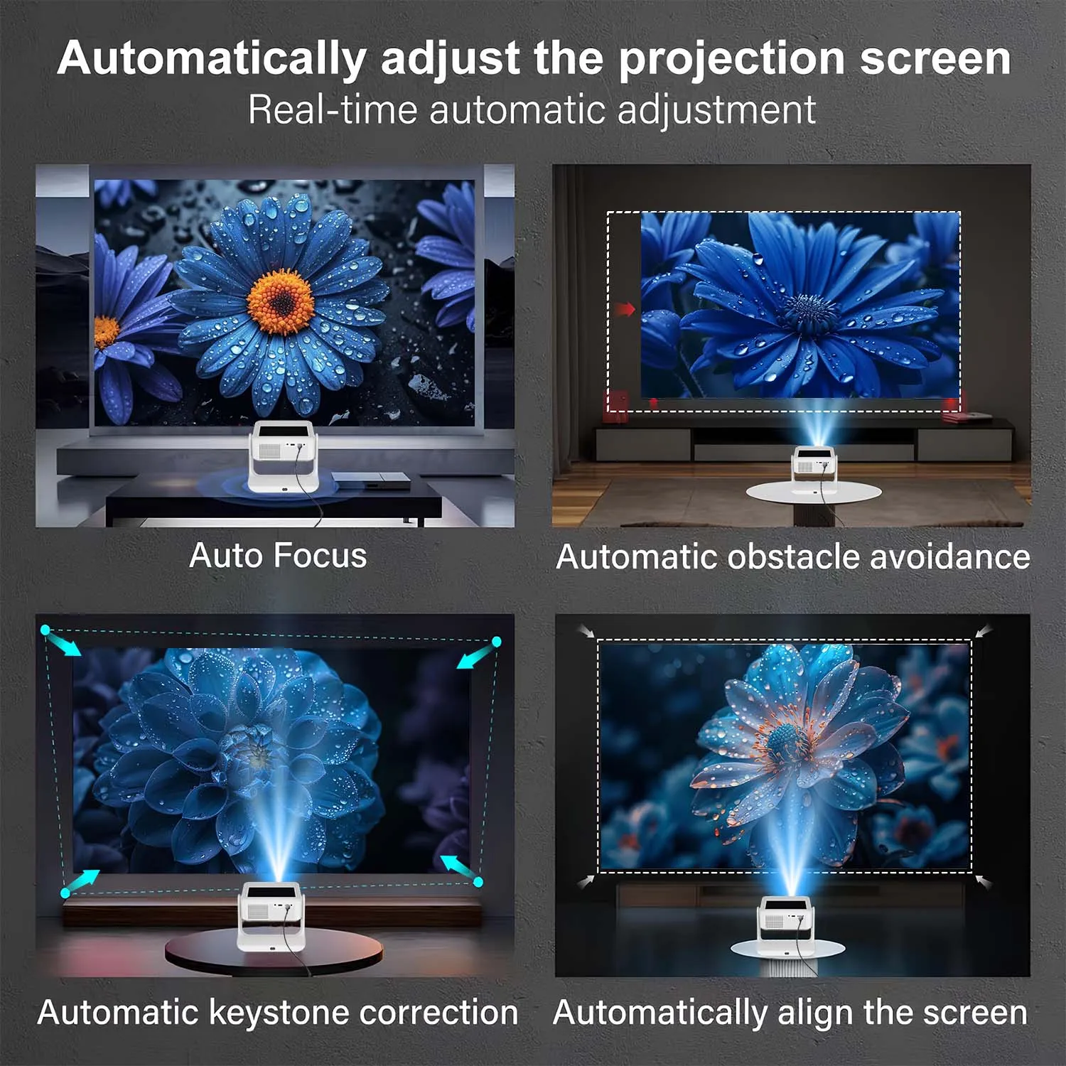 Colócalo donde quieras y el proyector se ajusta solo.