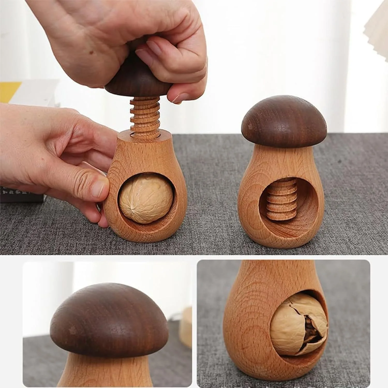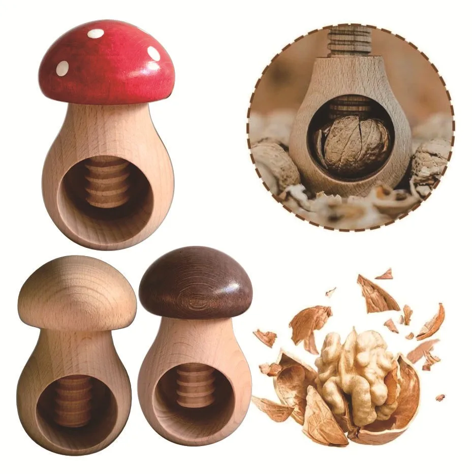 Wooden Mushroom-shaped Walnut Cracker Creative Wooden Mushroom Nut Shell Opener Multi-functional Clamping Tool for Peeling Walnu