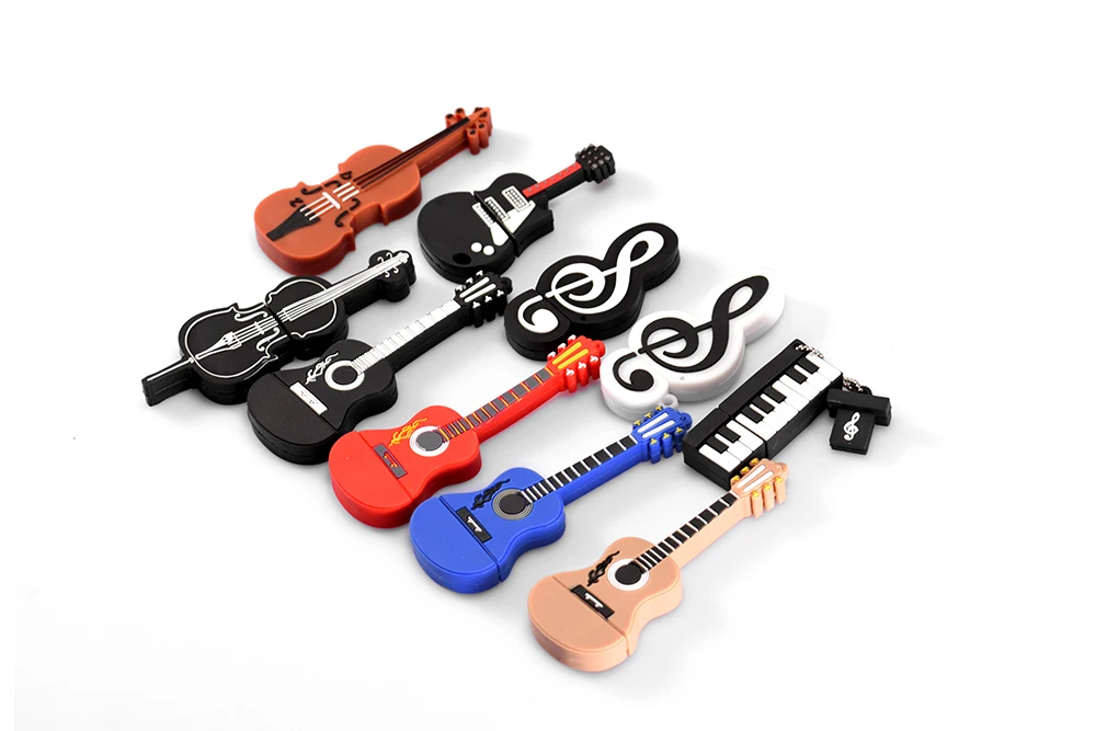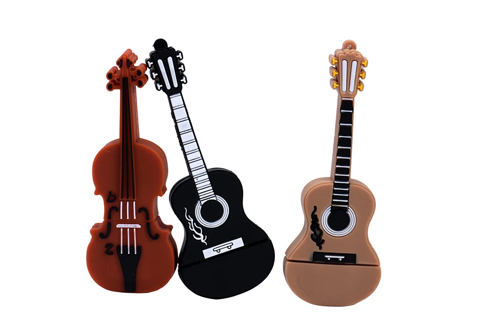 Unidad flash USB 2.0 de 128 GB con diseño de instrumento musical y notas de violín, color 64 GB, llavero de regalo
