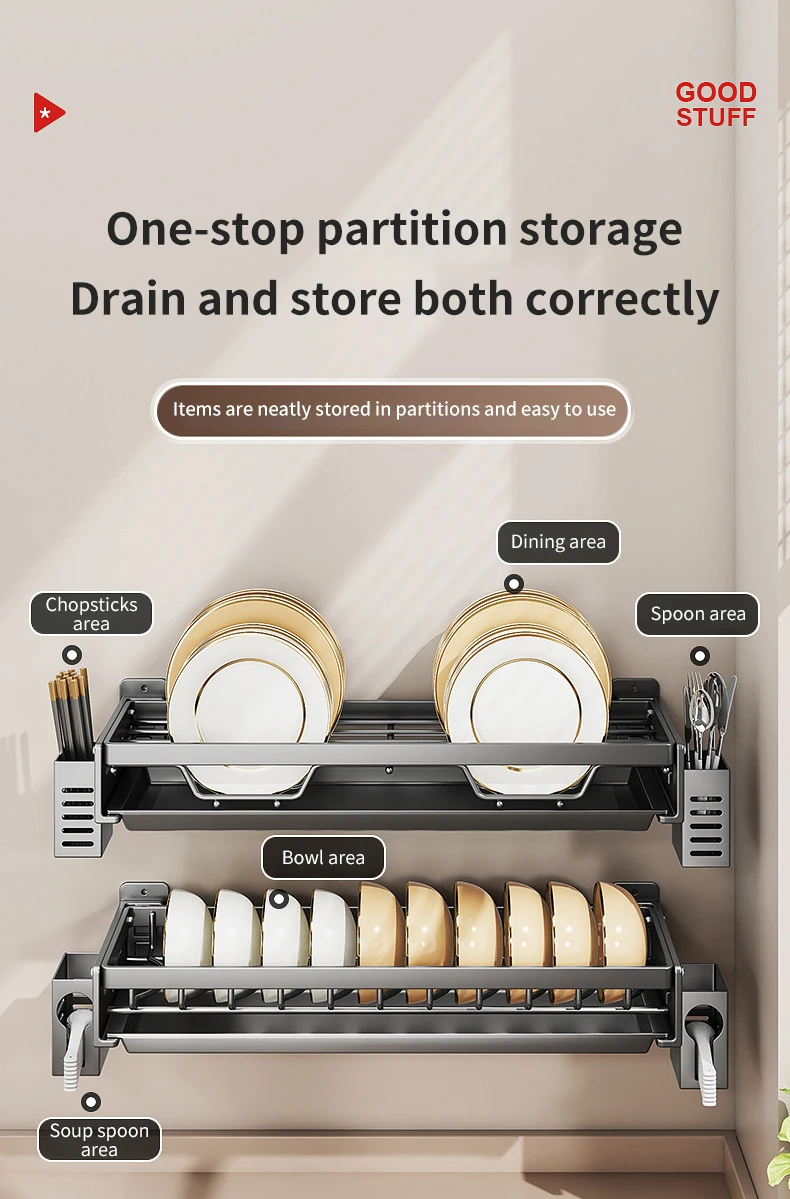 Optimiza tu cocina con este escurridor de platos mural de doble nivel, diseñado para mantener tu vajilla organizada, seca y siempre lista para usar. Ideal para quienes buscan orden, higiene y aprovechar al máximo el espacio.