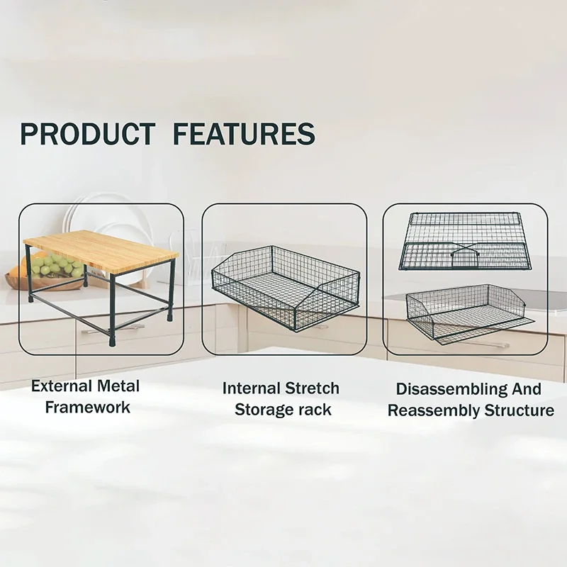 【Textured Aesthetic Design】The steel frame combined with a wooden countertop offers a simple yet sophisticated design that perfectly blends into various home styles.