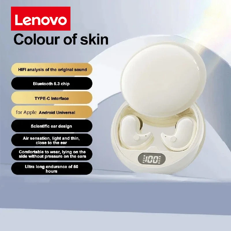 Auriculares invisibles Lenovo Y36 Mini Bluetooth 5.3 IPX5 impermeables TWS inalámbricos con micrófono, auriculares estéreo deportivos
