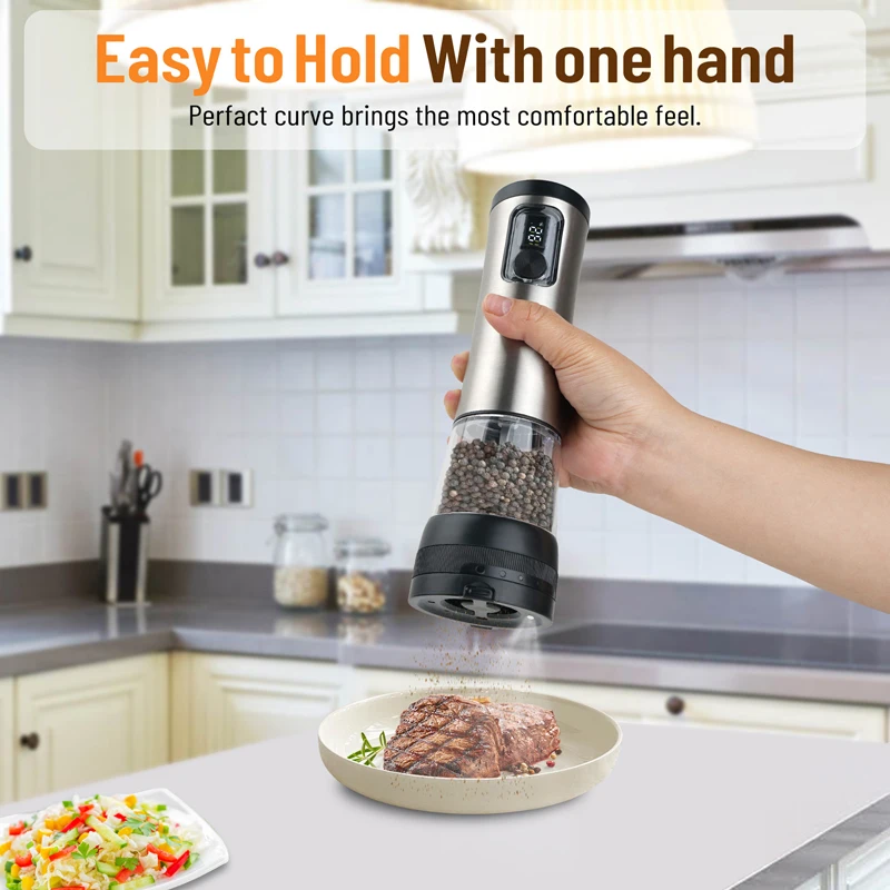 Dale un toque elegante a tu cocina con este set de molinos eléctricos de acero inoxidable. Su diseño sofisticado no solo luce increíble, sino que también ofrece máxima funcionalidad.