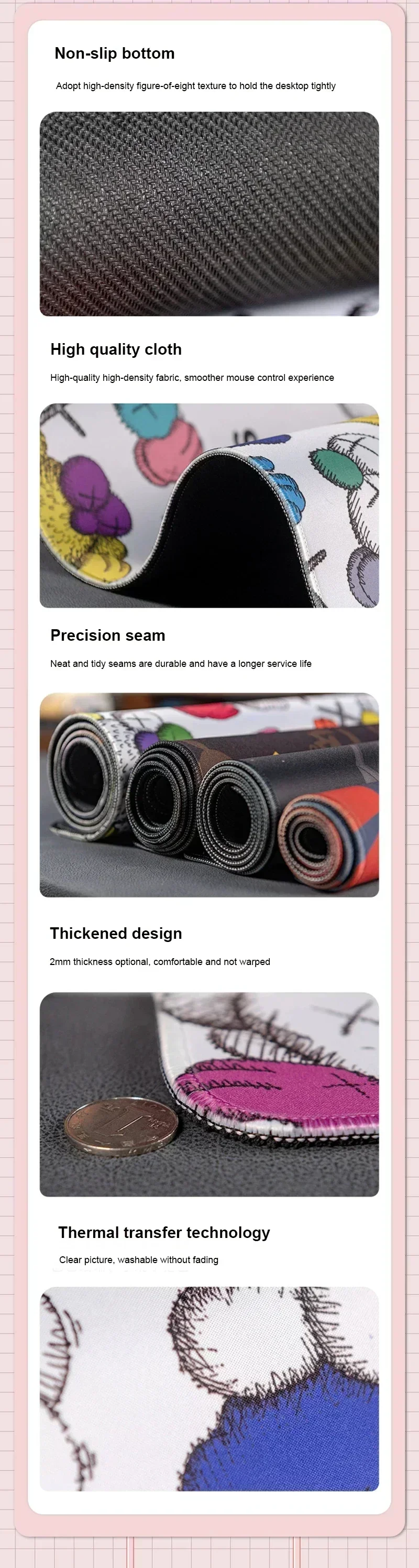 - 🚫 BASE ANTIDESLIZANTE DE GOMA NATURAL: Se adhiere firmemente a cualquier superficie. ¡Tu deskmat no se moverá ni un milímetro, incluso en las partidas más intensas o las jornadas de trabajo más ajetreadas!