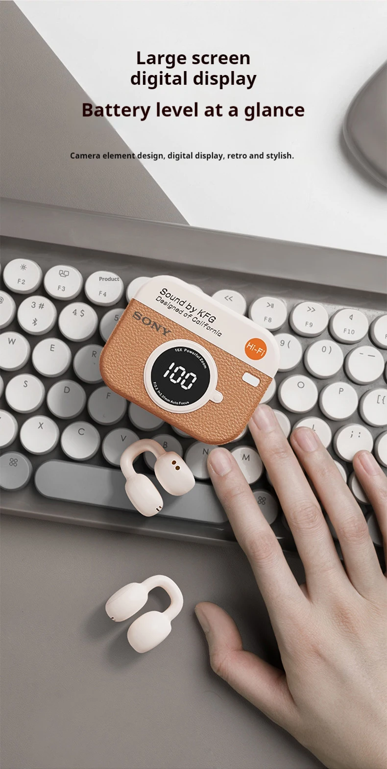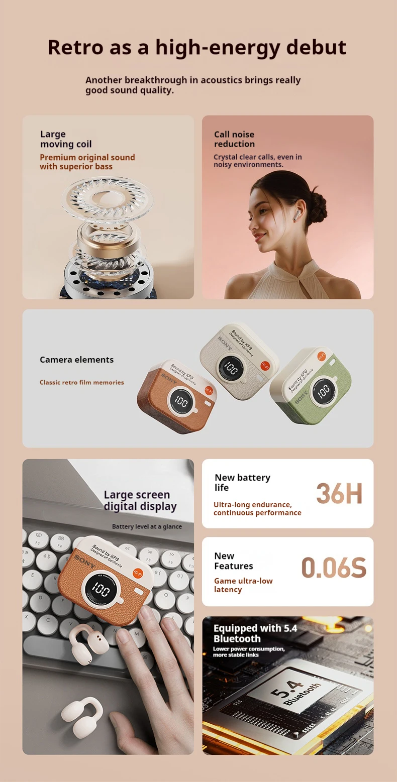Auriculares inalámbricos Sony Q87, auriculares retro Bluetooth, auriculares OWS con clip para la oreja y micrófono.