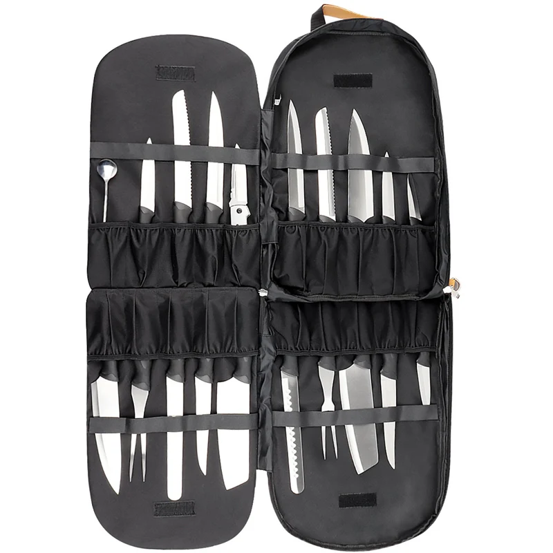 Si eres chef profesional, estudiante de gastronomía o amante de la cocina, sabes que tus cuchillos son una inversión importante. Este Bolso Profesional para Cuchillos está diseñado para mantenerlos organizados, protegidos y listos para acompañarte a donde vayas.